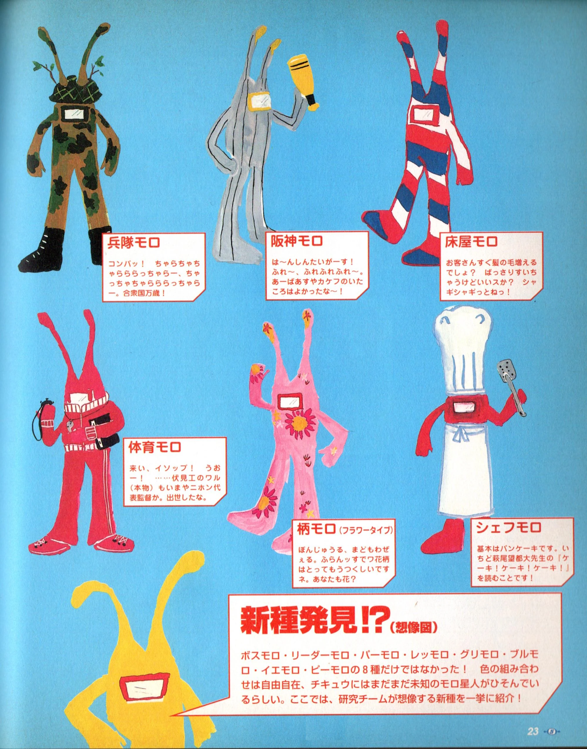 The Japanese character profiles taken straight from the Japanese version of Space Channel 5. However, unlike the game version of these profiles, it lists the locations you can rescue them (or unlock their profiles in certain cases) as well.
