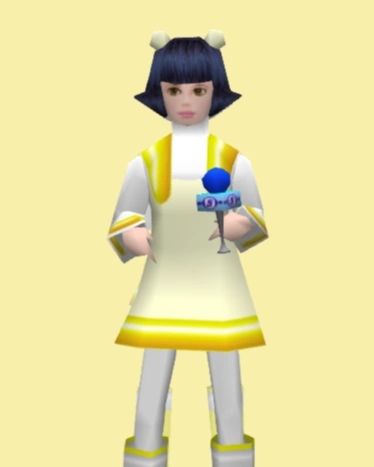 Profile Number 001 "Journaliste pour Channel 5 "Date de naiss: 30/05 "Groupe sanguin : B. "Même si elle a sauvé accidentellement la galaxie, elle est traitée de novice par son patron, Fuse. Son rêve : être une top journaliste."