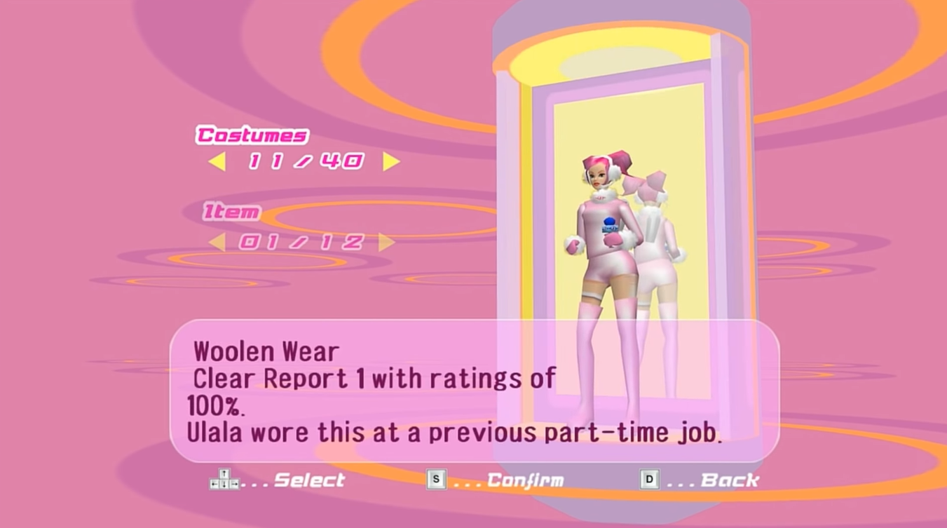 Ulala appeared in the game as a two star prize wearing her first Space Channel 5 game clothing.
