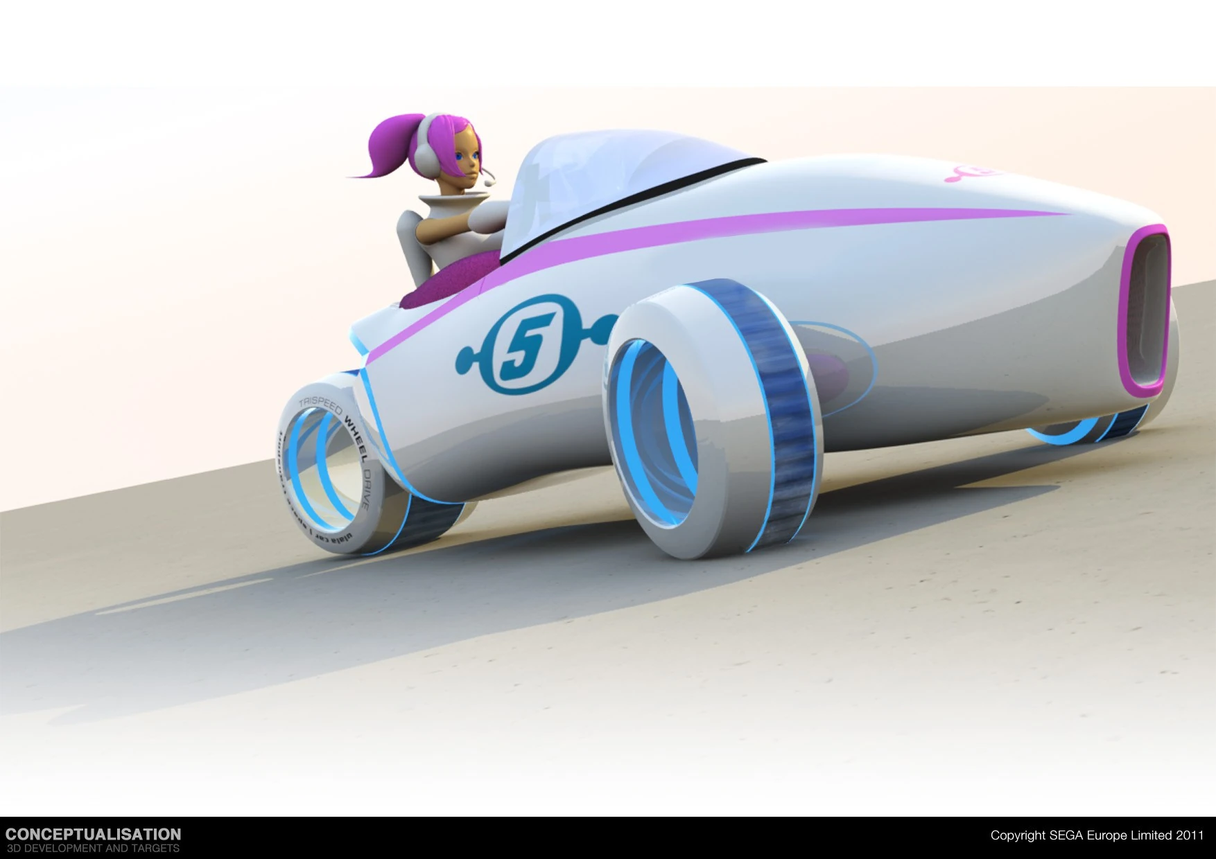 Ulala appears in the game as a playable character. She is a Speed Type character, and her Extreme Gear board is the "Channel5.", a white board with a 5 mark on it. Ulala is also one of the only characters incapable of riding bikes. Her Extreme Gear theChannel 5is actually a flat Astrobeat with a Channel 5 logo on it.