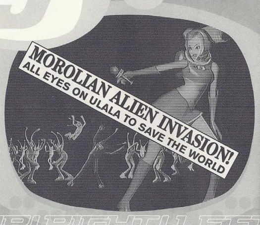 After the battle, it was discovered that the Morolians were being brainwashed as well and on Fuse's orders, Ulala fired at the television screen that kept the aliens in the room hypnotized. The secret base falls apart and everyone evacuates. As Ulala was riding out of the large tubing leading outside and pulling double duty in saving the Morolians, Jaguar came over the commlink between Ulala and Fuse, noting that the brainwash signal's frequency matched up with signals from Channel 5.